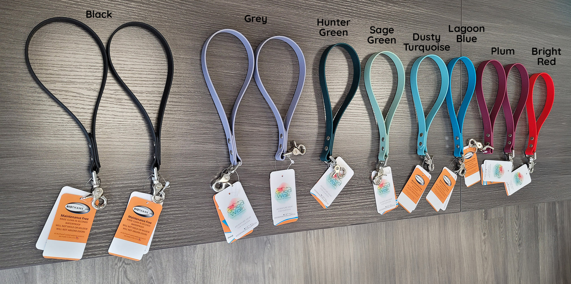 We love BioThane® because it’s easy to clean, doesn’t absorb odours, and is extremely durable. Contact us for custom lengths.
